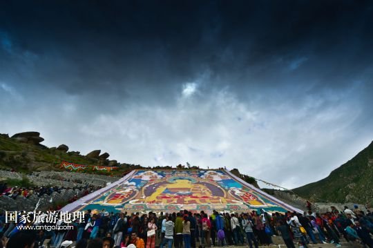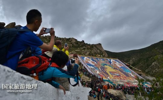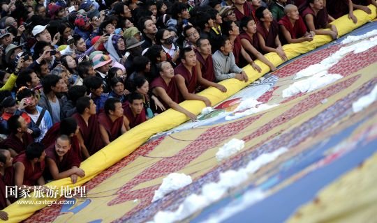 國家旅游地理 西藏拉薩8月6日訊 8月6日,拉薩哲蚌寺舉行展佛儀式。當(dāng)日,以西藏最大的格魯派寺廟哲蚌寺展佛為開端的雪頓節(jié)在拉薩拉開序幕。每年藏歷六月底七月初是西藏傳統(tǒng)的節(jié)日“雪頓節(jié)”。在藏語中,“雪”是酸奶子的意思,“頓”是“吃”“宴”的意思,“雪頓節(jié)”按藏語解釋就是吃酸奶子的節(jié)日,因此又叫“酸奶節(jié)”。因?yàn)?ldquo;雪頓節(jié)”期間有隆重?zé)崃业牟貞蜓莩龊鸵?guī)模盛大的曬佛儀式,所以有人也稱之為“藏戲節(jié)”“曬佛節(jié)”。 /新華社記者 普布扎西攝