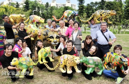 國(guó)家旅游地理 臺(tái)灣臺(tái)北9月18日訊 9月17日,人們?cè)谂_(tái)北市青年公園的云豹彩繪活動(dòng)上合影。當(dāng)日,臺(tái)北市青年公園舉行“記憶與重生——臺(tái)北市青年公園公共藝術(shù)計(jì)劃”活動(dòng),讓市民們彩繪出自己心中已經(jīng)滅絕的臺(tái)灣云豹的模樣,以此呼吁環(huán)保。 /新華社發(fā)(吳景騰 攝)
