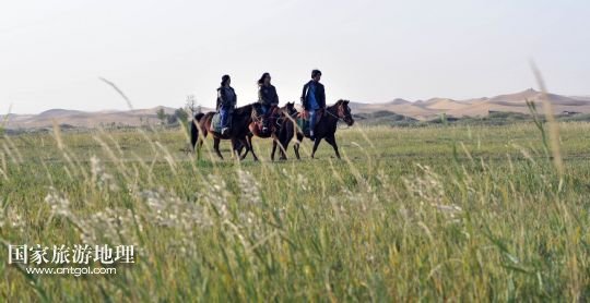 國(guó)家旅游地理 內(nèi)蒙古阿拉善9月29日訊 9月28日,游客在通湖草原景區(qū)騎馬。通湖草原景區(qū)位于內(nèi)蒙古和寧夏交界的騰格里沙漠腹地,景區(qū)匯集了沙漠、草原和湖泊,自然景觀獨(dú)特,吸引了眾多秋游的游客。 /新華社發(fā)(劉玉和 攝)