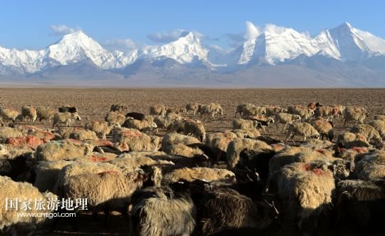 綽木拉日神山腳下的羊群(4月21日攝)。