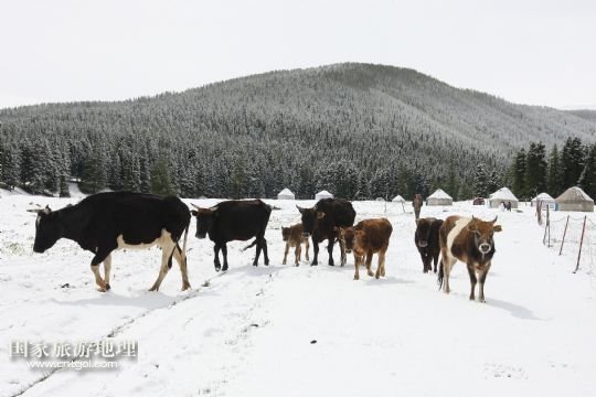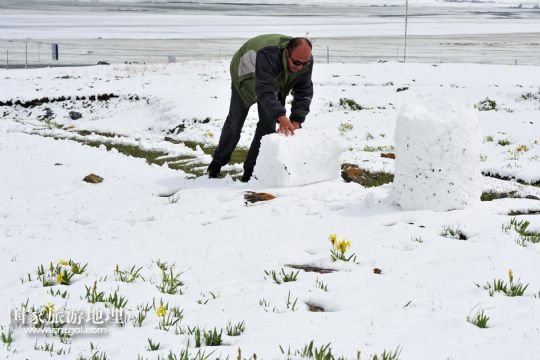 國家旅游地理 新疆哈密5月31日訊 5月31日,新疆哈密一位牧民在雪中放牧。當日,受冷空氣影響,新疆哈密北部沿天山一帶出現了降雪降溫天氣,給五月的天山披上銀裝。 /新華社發(fā)(普拉提 攝)